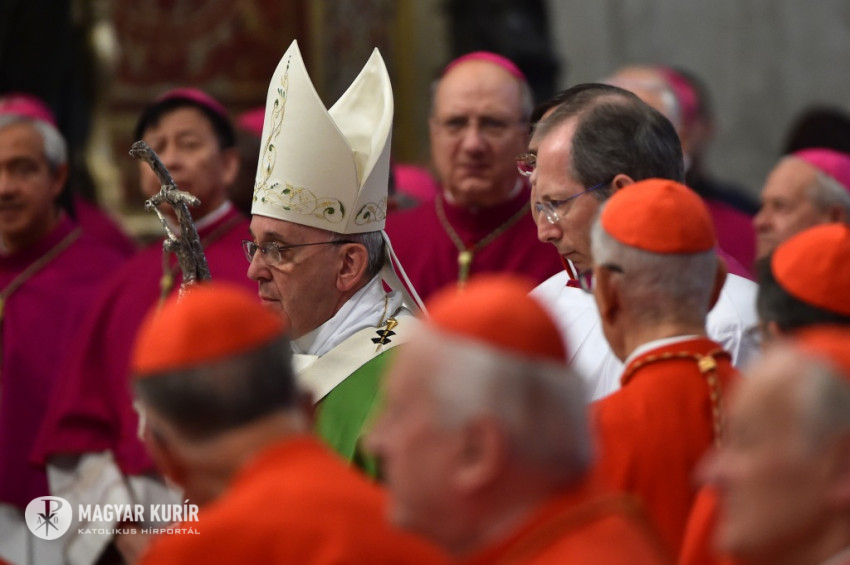 Az ünnepi szentmisén Ferenc pápával koncelebráltak a szinódusi atyák. Erdő Péter bíboros, a rendkívüli szinódus főrelátora az oltárnál a pápa jobbján állt.