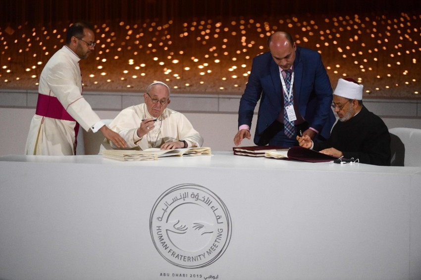Öt évvel ezelőtt írta alá Ferenc pápa Abu Dzabiban barátjával és testvérével, Ahmed et-Tajjebbel, az al-Azhar kairói egyetem főimámjával együtt a dokumentumot az emberi testvériségről a világbéke és a békés együttélés érdekében. Ebben azt kérték, hogy „ez a dokumentum váljon a kutatás és reflexió tárgyává minden iskolában, az egyetemeken, az oktatási és képzési intézményekben, hogy hozzásegítsen olyan új nemzedékek felneveléséhez, amelyek a jót és a békét viszik másoknak, és mindenütt védelmezik az elnyomottak és a legutolsók jogát”.