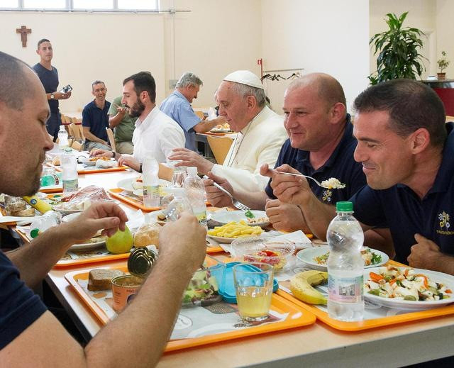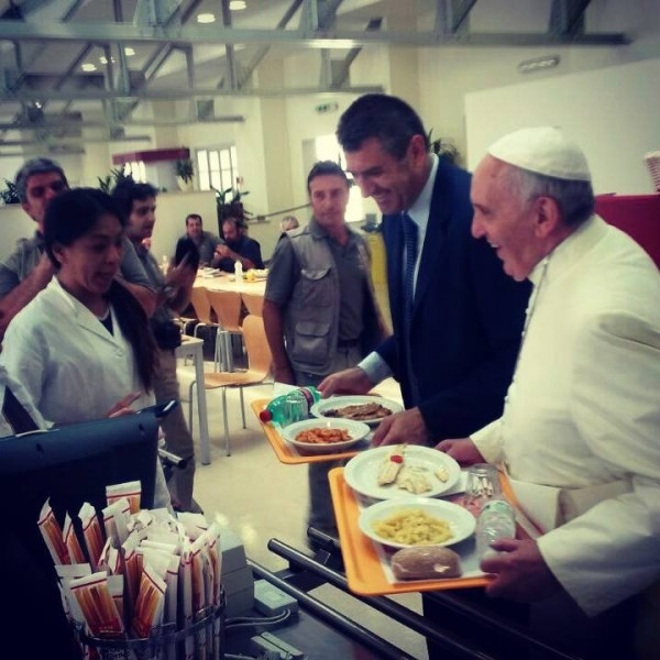 A Vatikáni Rádió munkatársa interjút készített a menza konyhafőnökével, aki elmondta: „Igen, a pápa ma a mi vendégünk volt. Úgy érkezett, mint a legegyszerűbb munkások. Beállt a sorba, kiszolgálta magát, mint a többiek: magához vette a tálcát és az evőeszközöket. Tésztát és halat evett. Nagyon jó érzés volt: körülvette őt nagy családja. Bemutatkoztunk neki, érdeklődött a munkánk felől, tetszését fejezte ki, nagyon jól érezte magát.