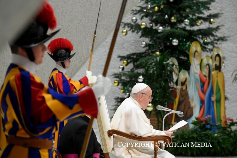 Kedves testvéreim, a betlehem olyan, mint egy kis kút, amelyből Isten közelségét, a remény és az öröm forrását meríthetjük. A betlehem olyan, mint egy élő evangélium, házi evangélium. Olyan, mint a kút a Bibliában, a találkozás helye, ahol Jézus elé vihetjük – ahogyan a betlehemi pásztorok és a grecciói emberek tették – az élet vágyait és gondjait.