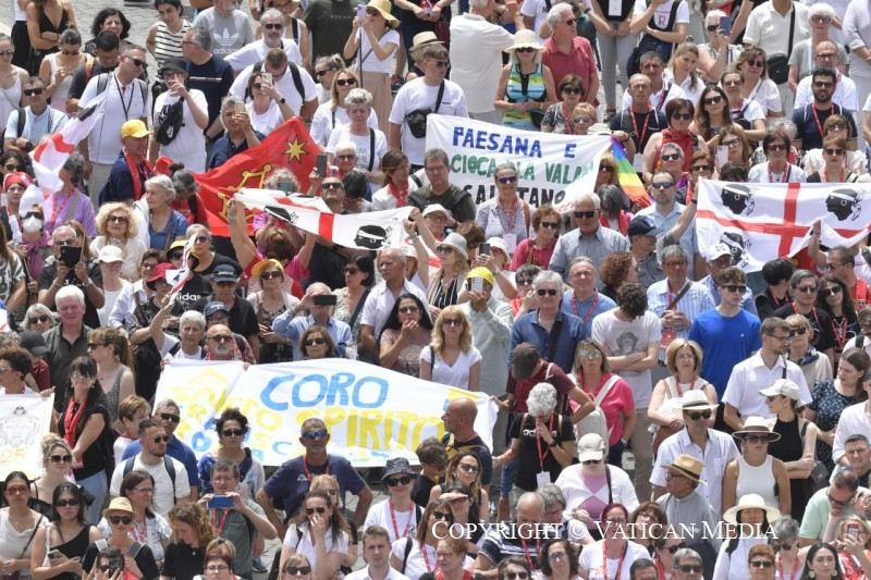 Ismételten üdvölzöm az énekeseket, akik a világ minden tájáról érkeztek Rómába, hogy részt vegyenek a Kórusok Negyedik Nemzetközi Találkozóján. Szeretteim, éneklésetekkel mindig megdicsőíthetitek Istent és továbbadhatjátok az evangélium örömét!