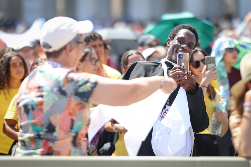Felajánlás, hálaadás, s a harmadik gesztus az osztozás. A misében ez az áldozás, amikor együtt az oltárhoz megyünk, hogy Krisztus testét és vérét magunkhoz vegyük: mindenki adományának gyümölcsét; mindenki adományát táplálékká alakította át Úr mindenki számára. Gyönyörű mozzanat ez, az áldozás, mely arra tanít bennünket, hogy a szeretet minden gesztusát kegyelmi ajándékként éljük meg, mind adományozóként, mind befogadóként.