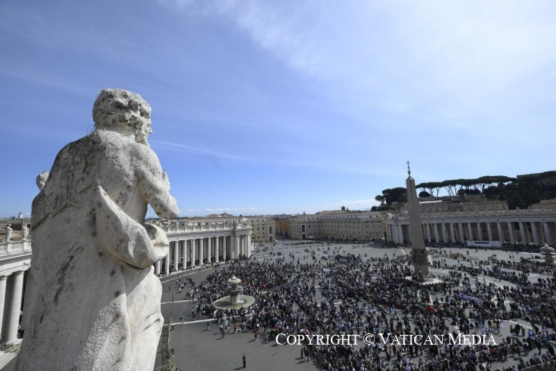 Köszöntelek mindannyiatokat, akik Rómából, Olaszországból és a világ számos tájáról érkeztetek. Külön is köszöntöm a „Camplus” egyetemi kollégiumi hálózat spanyol hallgatóit, a madridi, pescarai, chieti, locorotondói egyházközségi csoportokat, továbbá a római San Giovanni Leonardi-plébániáról érkezett csoportot. Köszöntöm a comói Szent József szociális szövetkezetet, a perugiai gyerekeket, a hitvallás letétele felé tartó bolognai fiatalokat, valamint a paviai, a Iolo di Prató-i és a Cavaion Veronese-i bérmálkozókat.