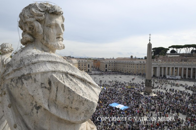 Testvéreim, hányan szenvednek és halnak meg hatalmi harcok miatt! Olyan életek ezek, amelyeket a világ elutasít, ahogy Jézust is elutasította, olyanokról van szó, akiket kirekesztenek, akik meghalnak… Amikor Jézust az emberek kezébe adták, nem ölelést talált, hanem keresztet. Az evangélium mégis élő és reményteli üzenet marad: ő, akit elutasítottak, feltámadt, ő az Úr!