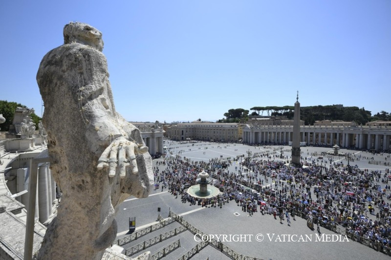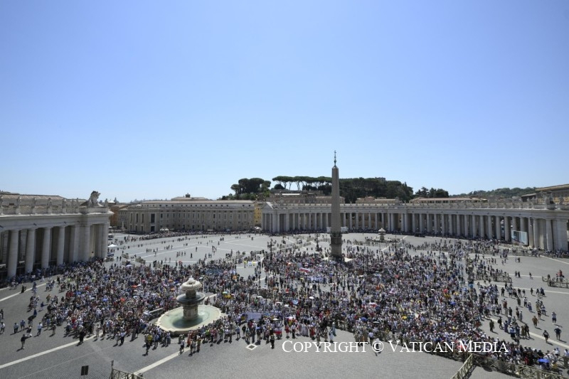 Köszöntelek benneteket, rómaiak, Olaszországból és számos más országból érkezett zarándokok! Külön is köszöntöm a Szent Ágoston-rendhez kapcsolódó világiak nemzetközi kongresszusának résztvevőit. Köszöntöm a Názáreti Szent Család Nővéreit, akik most tartják általános káptalanjukat. Köszöntöm az Alto Adigében található lusoni egyházközség fiataljait, akik végigjárták a Via Francigenát. Üdvözlöm a Földközi-tenger Ifjúsági Tanácsát, ők tiszteletreméltó Giorgio La Pira üzenetét idézik fel. Üdvözlöm a Regnum Christi növendéknevelői nemzetközi tanfolyamának fiatal résztvevőit.