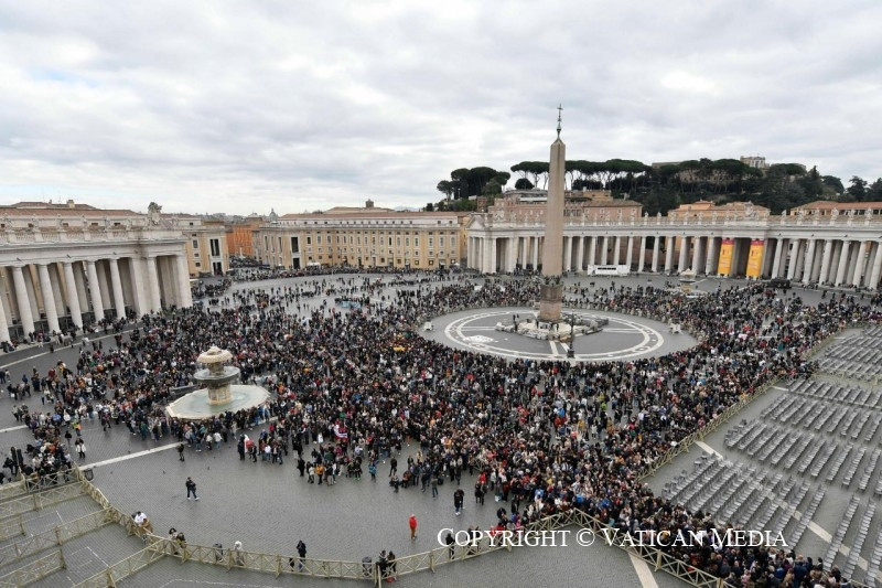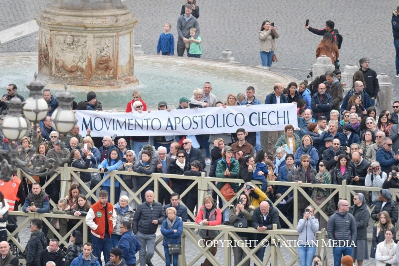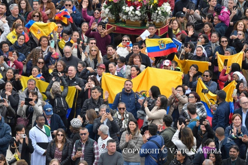 Szeretettel köszöntelek mindnyájatokat, Olaszországból és a világ más tájairól érkezett zarándokok. Köszöntöm a madridi, ibizai és varsói híveket, valamint a Katolikus Tanárok Világszövetsége Tanácsának tagjait. Köszöntöm az Apriliából, San Ferdinando di Pugliából és Sant’Antimóból érkezett csoportokat; az Orta Nova-i FIDAS Egyesületet, valamint a Vakok Apostoli Mozgalma által szervezett „Megosztás Napjai” résztvevőit. Külön is üdvözlöm a római ecuadori közösséget, mely a Quinchei Boldogságos Szűz Máriát ünnepli. Üdvözlöm a Szeplőtlenül Fogantatott Szűzanya-plébánia fiataljait is.