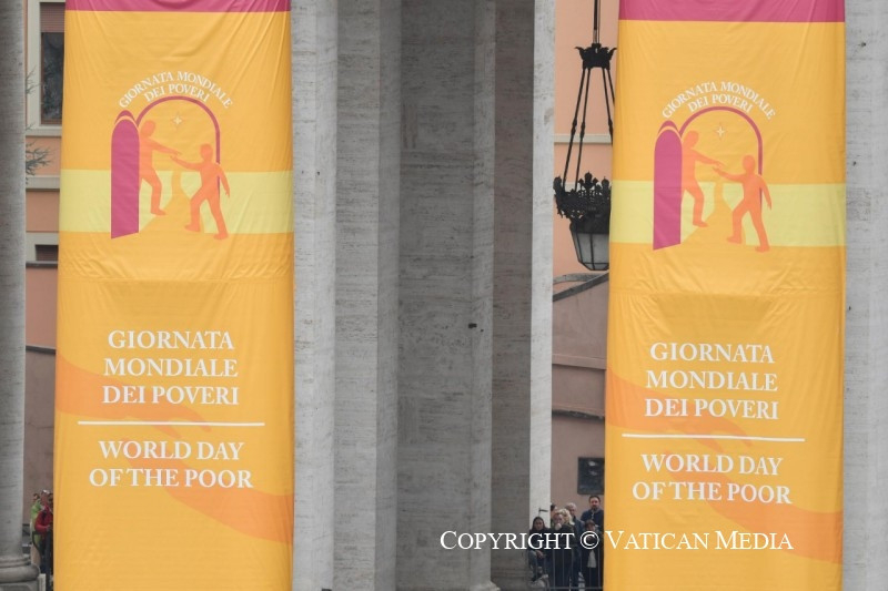 Ma tartjuk a szegények hetedik világnapját, melynek idei témája: „Ne fordítsd el arcodat a szegénytől” (Tób 4,7). Köszönetet mondok mindazoknak, akik az egyházmegyékben és az egyházközségekben szolidaritási programokat kezdeményeztek a megélhetésükért küzdő emberekkel és családokkal.