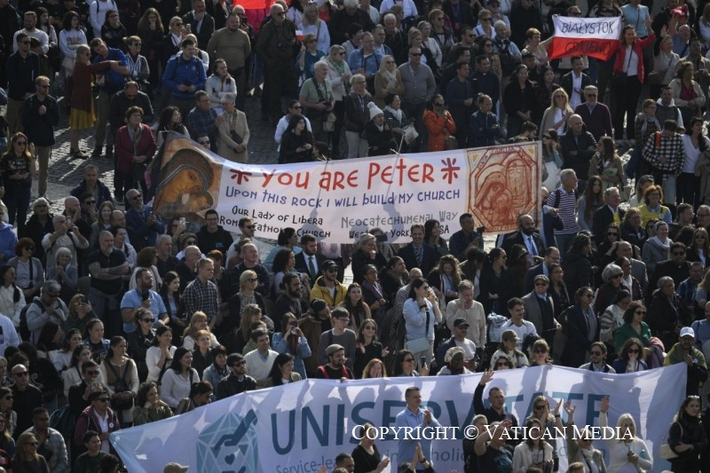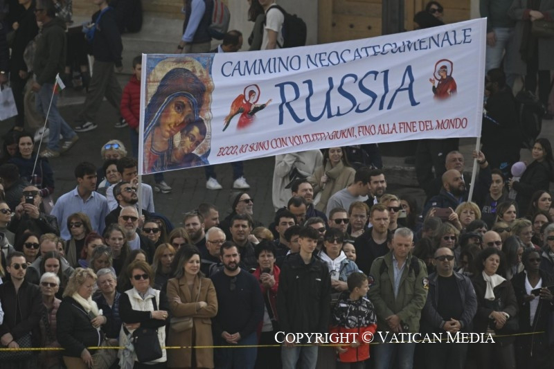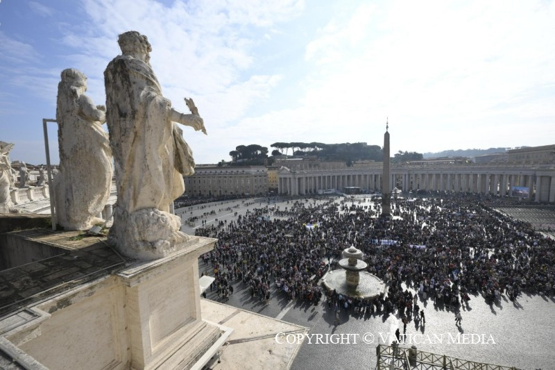 Szeretettel köszöntelek mindnyájatokat, rómaiak és zarándokok, valamint a Szeplőtlen Szűzanya-plébániájához tartozó fiatalok. Külön is köszöntöm Kazahsztánból, Moszkvából, New Yorkból, a Korzikán található Bastiából, a portugáliai Bejából és Algarvéból, valamint a Varsóból, Lublinból és Lengyelország más részeiből érkezett híveket.