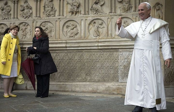 A Szentatya viaszmásán hat hónapon át dolgozott egy tizenöt fős csapat Ponneh Aziminejadi szobrászművész irányításával. Nem ez az első Ferenc pápát ábrázoló viaszszobor, a római panoptikumban már áll egy hasonló alkotás.