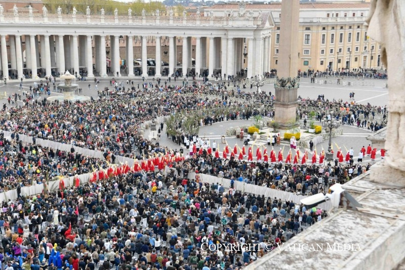Ez nem a vég, mert Jézus átélte ezt, és ő most veled van: ő, aki elszenvedte az elhagyatottság távolságát, hogy szeretetébe befogadja mindannyiunk távolságát. Hogy mindannyian elmondhassuk: a bukásaimban – valamennyien sokszor elbuktunk már –, az elhagyatottságomban, amikor úgy érzem, elárultak, vagy én árultam el másokat, amikor úgy érzem, elutasítottak, vagy én utasítottam el másokat, amikor úgy érzem, elhagytak, vagy én hagytam el másokat, akkor gondoljunk arra, hogy őt is elhagyták, elárulták, elutasították. Ott találjuk őt. Amikor rossznak és elveszettnek érzem magam, amikor nem bírom már tovább, ő velem van; a sok megválaszolatlan miértemben ő ott van.