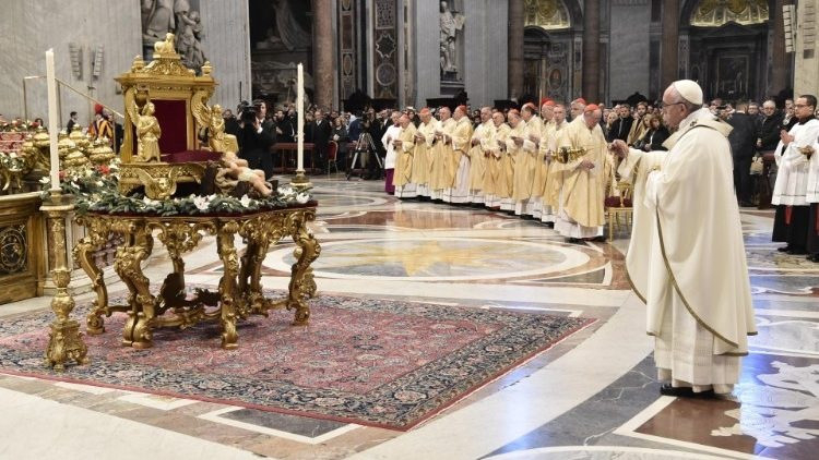 Ez ránk is érvényes. Nem elég tudni, hol született Jézus, mint az írástudók, ha nem érjük el azt az „hol”-t. Nem elég tudni, hogy Jézus megszületett, mint Heródes, ha nem találjuk meg őt. Amikor az ő hol-ja a mi hol-unkká válik, amikor az ő mikor-ja a mi mikor-unkká válik, az ő személye a mi életünkké, akkor a jövendölések beteljesednek bennünk. Akkor Jézus megszületik belül, és értem élő Istenné lesz. Testvéreim, ma arra kapunk meghívást, hogy utánozzuk a bölcseket. Ők nem vitatkoznak, nem, mennek; nemcsak néznek, hanem belépnek Jézus házába; nem helyezik magukat a középpontba, hanem leborulnak előtte, aki a középpont; nem ragaszkodnak előzetes terveikhez, hanem készek arra, hogy más utakra lépjenek. Gesztusaikban szoros kapcsolatban állnak az Úrral, gyökeresen nyitottak feléje, teljesen be vannak vonódva őbeléje. A szeretet nyelvén beszélnek vele, ugyanazon a nyelven, amelyet Jézus, még csecsemőként, már beszél. A bölcsek ugyanis nem azért mennek az Úrhoz, hogy kapjanak, hanem hogy adjanak. Kérdezzük meg magunktól: karácsonykor vittünk valamilyen ajándékot Jézusnak, az ő ünnepére, vagy csak egymást ajándékoztuk meg?