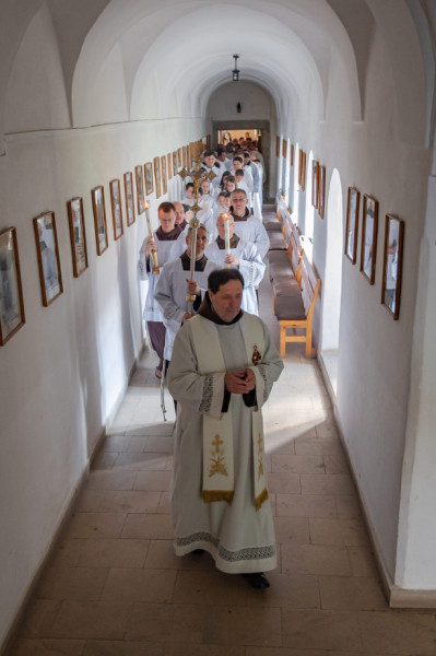 Az ünnepélyes beöltöztetés után az újonnan felszentelt átvette a szolgálatának liturgikus eszközeit. A békeköszöntések után Fülöp testvér már papként szolgált a szentmisén.
