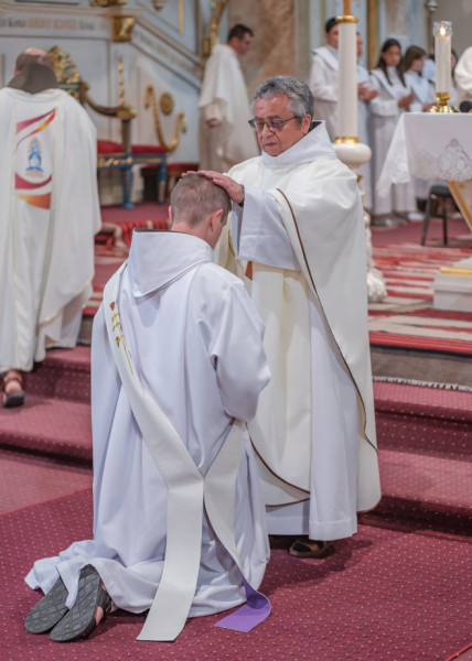 Az evangélium felolvasása után a ferencesek elöljárója ismertette a jelöltet, és áldozópappá szentelését kérte a főpásztortól az Anyaszentegyház nevében. A püspök kérdésére, miszerint méltónak találja-e a jelöltet az áldozópapi szolgálatra, a ferences provinciális azt válaszolta, hogy a keresztény nép megkérdezése és az illetékesek véleménye alapján méltónak találja a ferences diakónust, hogy Isten és az ő szent népe szolgálatára áldozópappá szentelje őt.