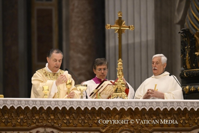 Liguori Szent Alfonz azt tanítja, hogy az imádkozás a halottakért a szeretet legnagyobb cselekedete. Amikor felebarátainkat anyagilag segítjük, mulandó javakat osztunk meg velük, de amikor imádkozunk értük, akkor örök javakkal segítjük őket. Hasonlóképpen élt a szent Ars-i plébános, a papok védőszentje. A halottakért végzett ima tehát azt jelenti, hogy szeretjük az elhunytakat, és ezt tesszük most, imádkozunk Ferenc pápáért, Isten népeként egybegyűlve, együtt a pásztorokkal, és ma este különösen a megszentelt férfiak és nők igen számottevő jelenlétében.