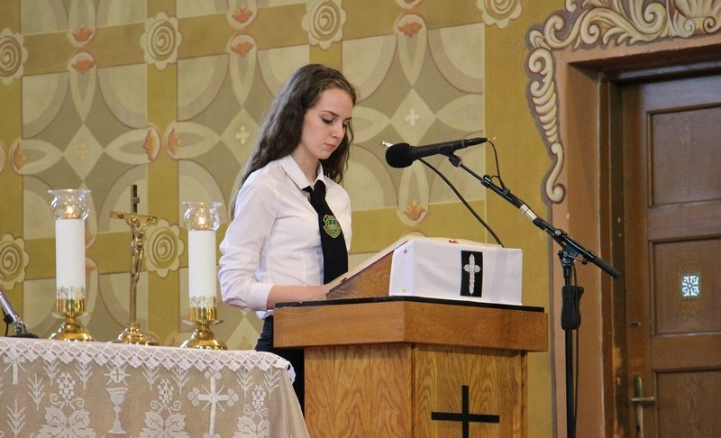A kilencedikes diákok ünnepélyes esküt tettek, majd átvehették osztályfőnökeiktől az iskola kitűzőjét és az emléklapot. Ezt követően Téglás László igazgató és Finta József plébános köszöntötték a megjelenteket.