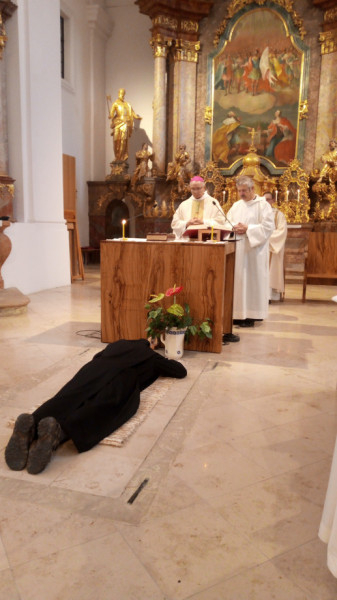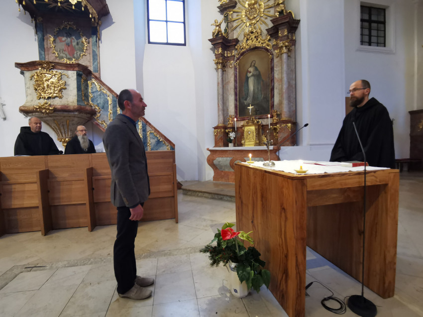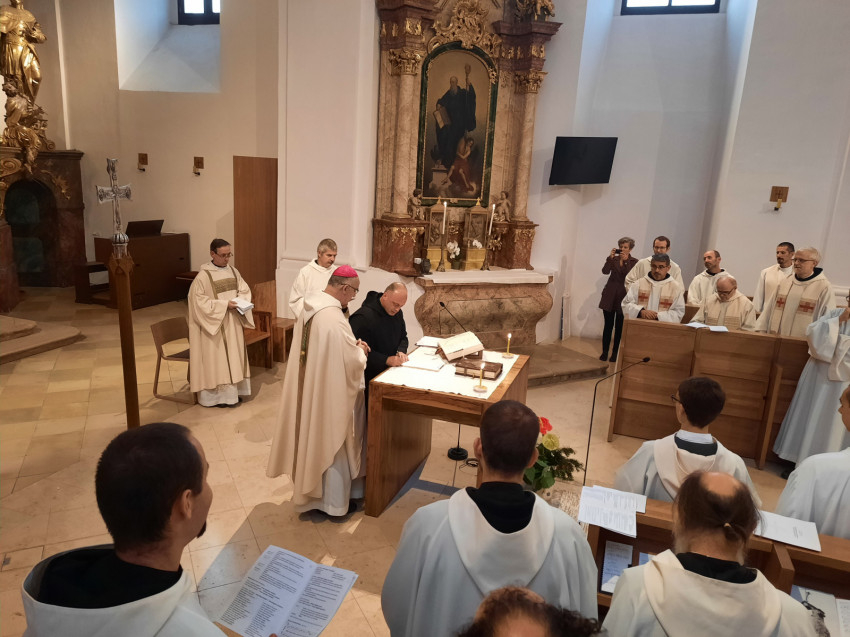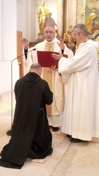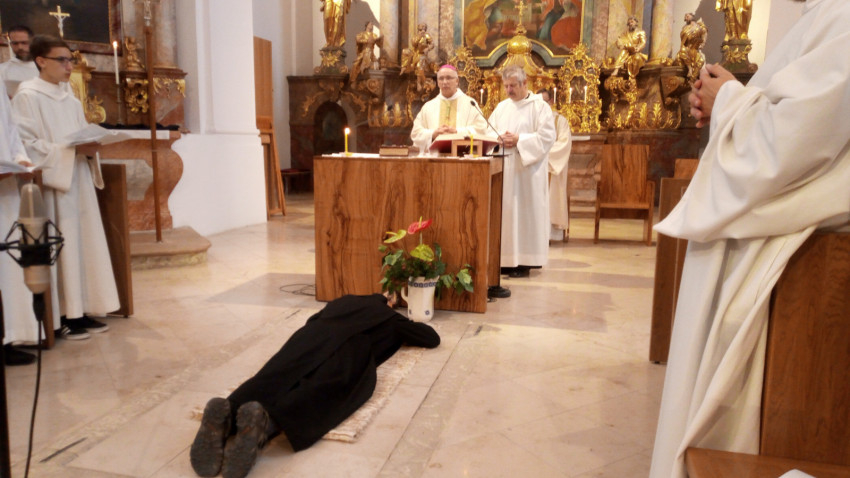A Békés megyei Körösszegapátiból származó Máté testvér, aki ötödik éve él a monostorban, a bakonybéli testvérek, a más bencés monostorokból érkezett vendégszerzetesek és a monostor lelki családjához tartozó hívek körében fogadott egész életére engedelmességet, szerzetesi életalakítást és állhatatosságot Szent Benedek Regulája szerint.