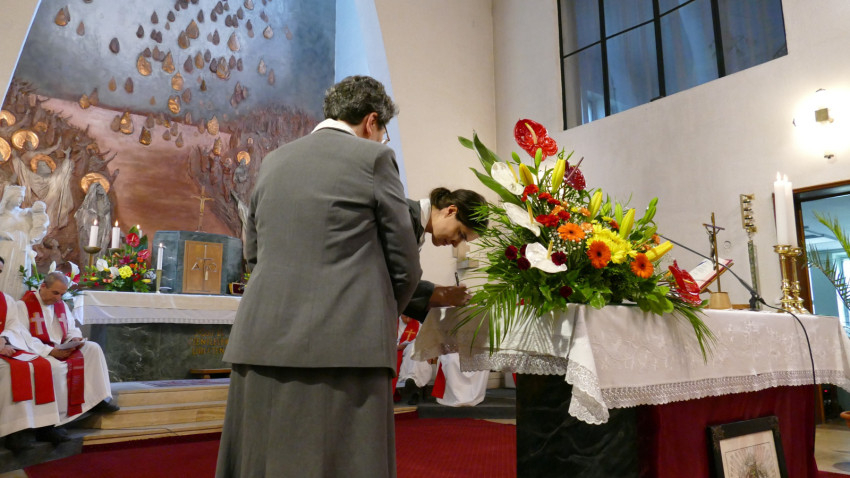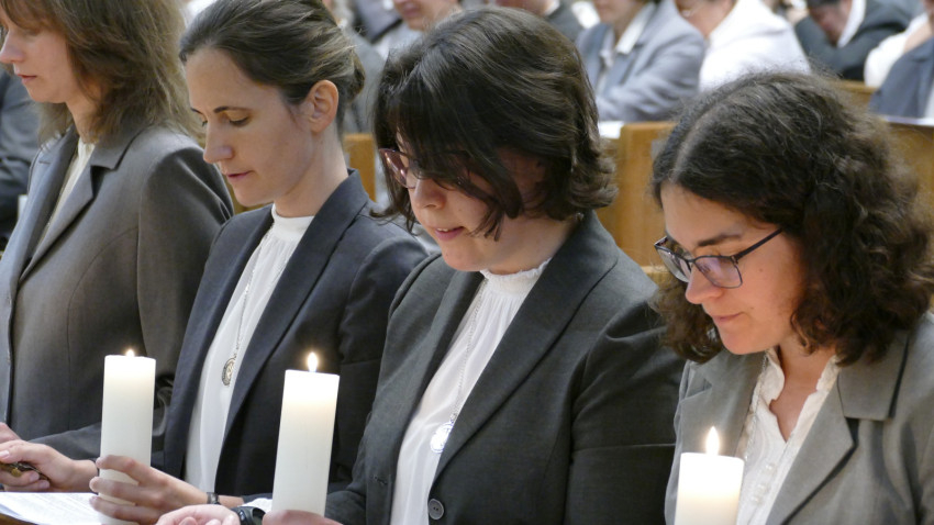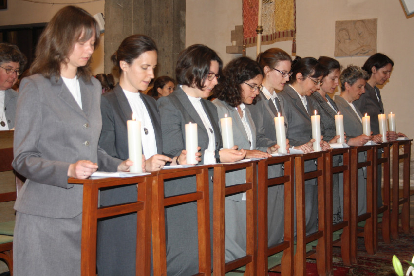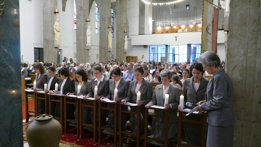 A szentmisén Berki Bettina, Földváry Katalin, Liliom Emese, Márton Etelka Anna, Mészáros Csenge, Naményi Ildikó, Rácz Borbála Erzsébet, Szabó Anikó és Vadász Kinga Mária újította meg ideiglenes fogadalmát. Ők Németh Emma testvérnek, a társaság kerületi elöljárójának a kezébe tették le fogadalmukat.