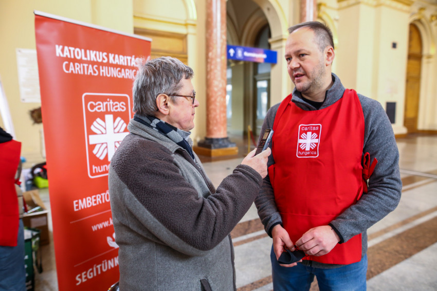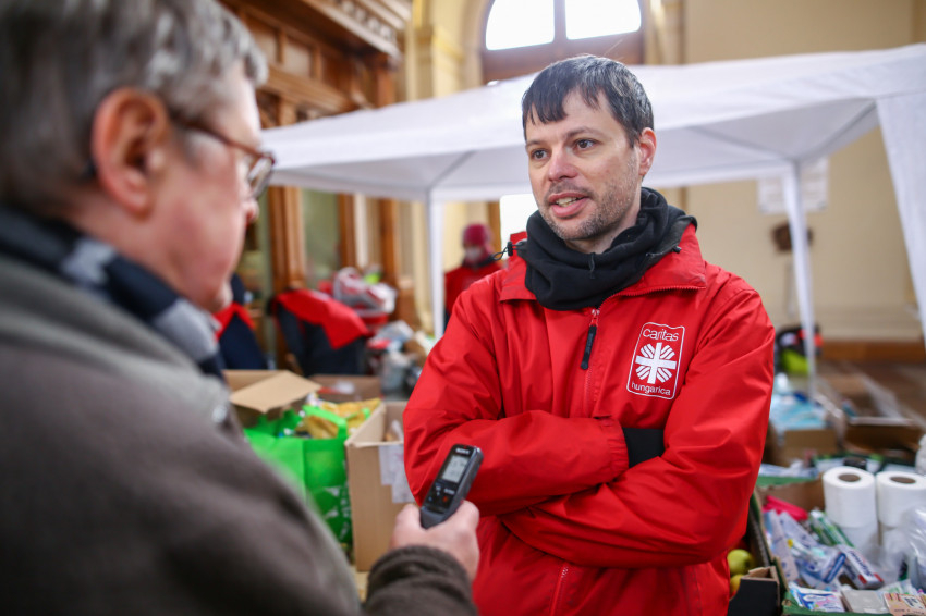 Miközben beszélgetünk, kérdezősködünk, újabb önkéntes érkezik, Sztankaninecz Gábor, aki a Szent István-bazilika karitászcsoportjában önkénteskedik. Szavai szerint elsősorban a katolikus hite hívta ide, különös tekintettel a nagyböjti készületre. Ez a háborús, rettenetesen nehéz helyzet különösen alkalmas arra, hogy nagyböjtben kicsit közelebb kerüljünk az emberekhez.