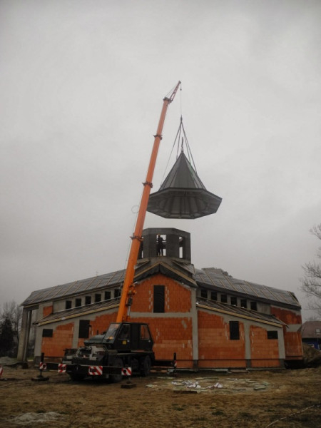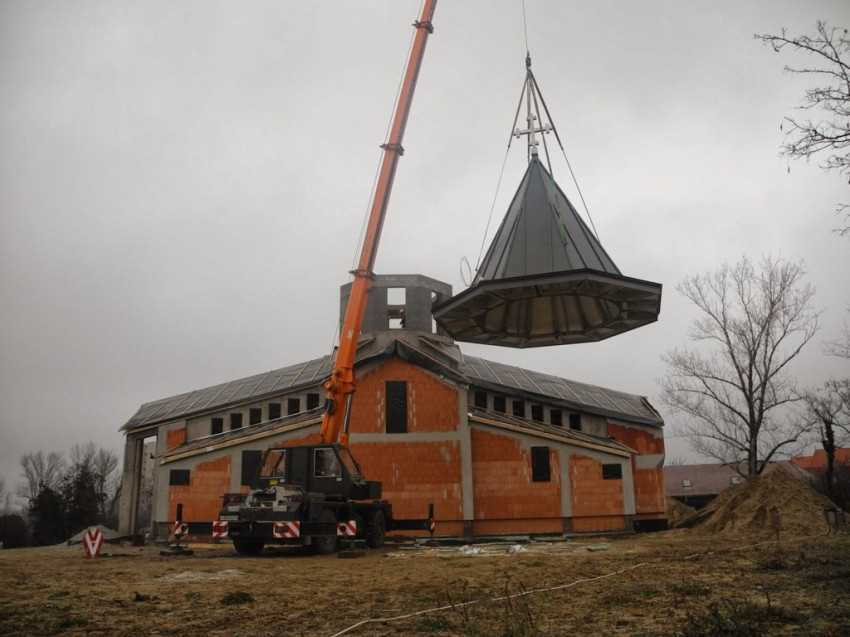 2014. január 23-án autódaru emelte a helyére a földön készre szerelt toronysisakot, tetején a kereszttel. 2015 tavaszán elkészült a templom dísztégla burkolata is.