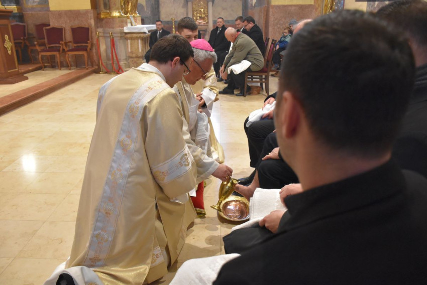 A homília után a lábmosás szertartása következett, amelynek keretében a főpásztor megmosta a székesegyház képviselőtestületi tagjainak lábát. A szentmise végén az Oltáriszentséget a főoltárról őrzési helyére vitték, a Vérrel Könnyező Szűzanya-kegyoltárához, végül a főoltárt is megfosztották díszeitől, Jézus elfogatására és szenvedésére emlékezve.