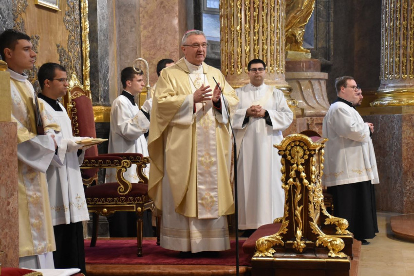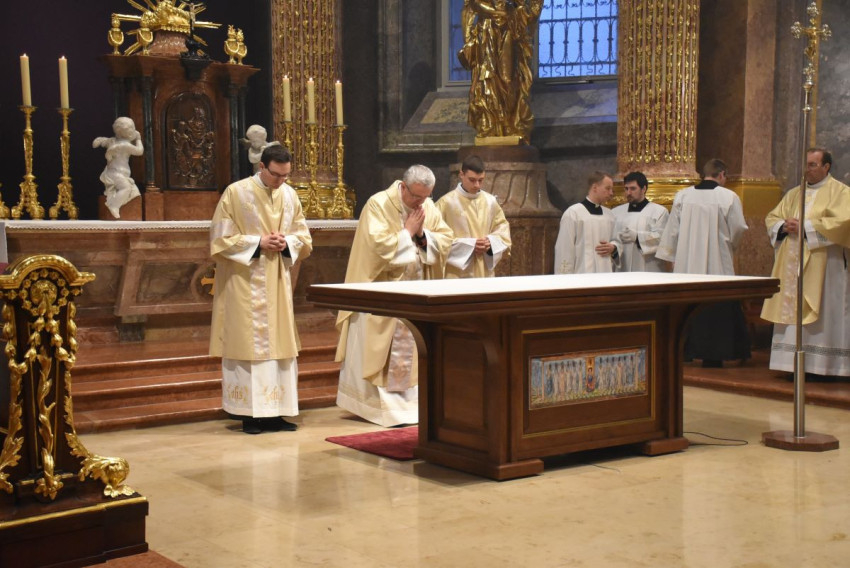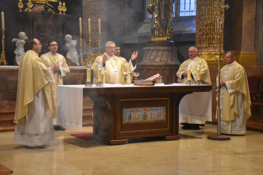 Április 6-án, Nagycsütörtökön Veres András győri megyéspüspök szentmisét mutatott be az Utolsó Vacsora emlékére a Nagyboldogasszony-székesegyházban.