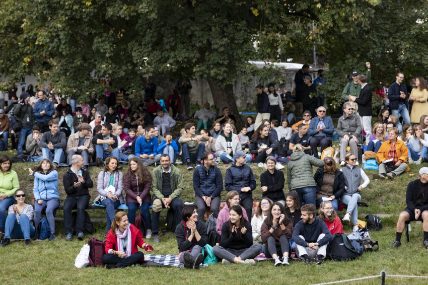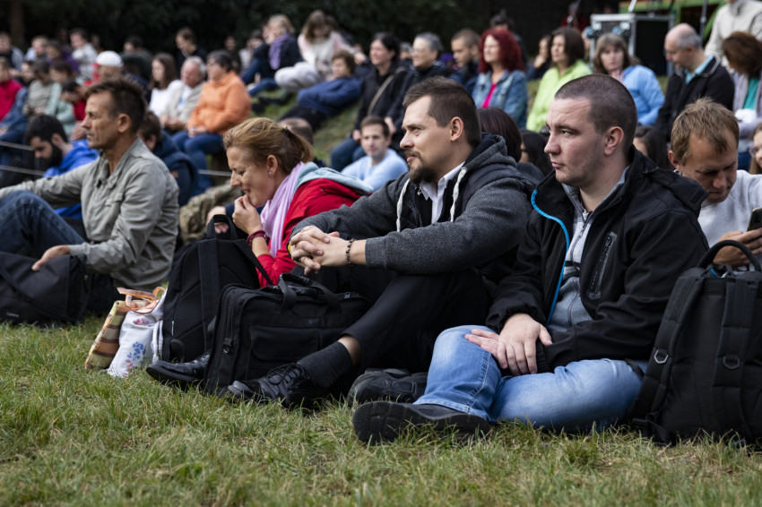 Itt a lebombázott város, egy romhalmaz. Benne egy kicsinyke csapat énekelni, imádkozni kezd. A romhalmaz az életünk. A rejtekhelyen töltött idő során valami átalakul, már nem fontos, hogy gyűjtögessünk. „Uram, a lábaid elé teszem mindazt, amim van. Nem féltem tőled a személyiségemet, a baráti körömet, az ízlésemet, az időmet, mert Te jobban tudod. Fogadjuk a Mestert térden állva” – hívta a jelenlévőket Gájer László, aki előadása végét átvezette a szentségimádásba.