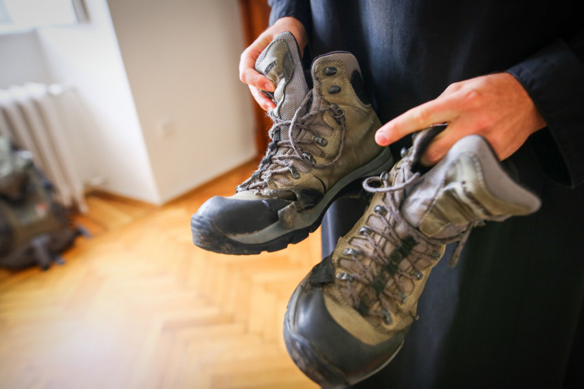 A bakancs először törte a lábam, neki is fájt, nekem is. Aztán elmúlt. Összeszoktunk, sok-sok pocsolyán mentünk át együtt, megvédett. Később elszakadt, varratni is kellett, és az újabb túrákon újabb szakadások keletkeztek rajta. De újra és újra fel kell venni, este letisztogatni, megszárítani. Szeretjük a szépet, az újat, de ami igazán sokat mond rólunk, az a viseltes ruhadarab. Ami igénybe van véve, amiben sok időt töltöttünk. Számomra szimbólummá vált a bakancs. Mi az, ami az életemben szorít, amit a nap elején nehéz felvenni, amit nehéz folytatni? Jézus azt mondja, aki utánam akar jönni, vegye fel a keresztjét. Bennem így hangzott ez a mondat a túrák hatására: