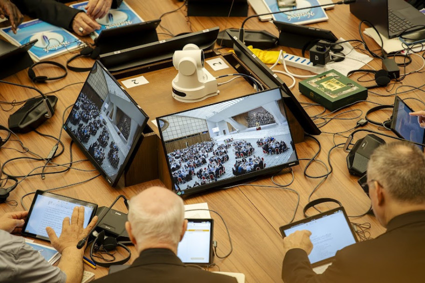 – jegyezte meg, majd ezt követően kitért a teológusok közgyűlésen betöltött szerepére. Hangsúlyozta feladatukat, hogy figyelmesen, „teológiai intelligenciával” hallgatják meg, hogy mi lesz hangsúlyos a párbeszéd során. A teremben fontosságukat az is kiemeli, hogy a munkaasztalaik idén 2023-hoz képest központibb helyen helyezkednek el.