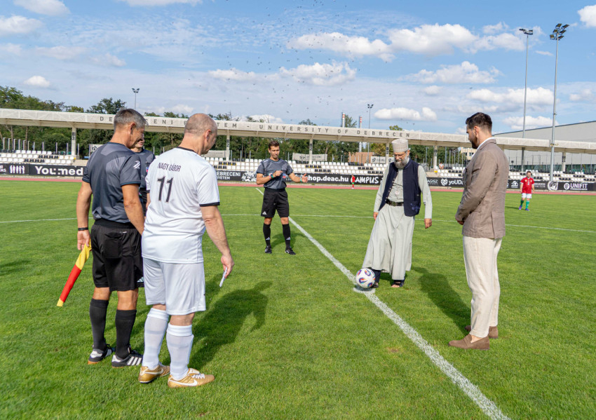 A gálamérkőzés előtt közös imádságra került sor, amit Kocsis Fülöp érsek-metropolita vezetett – majd már más minőségében, kezdőrúgóként láthattuk Barcsa Lajos alpolgármester társaságában. Bár a katolikus papok csapatának edzőjét becézik Kacsának, támadójátékuk, különösen a második félidőben nem hápogott – ellenben a protestáns lelkészek nyelték a gólokat, mint kacsa a nokedlit… Az, hogy ennyire simaliba (és nem simakacsa…) lesz a vége, az első félidőben még nem lehetett látni. Nem indult különösebben nagy iramban a mérkőzés, maradjunk annyiban, hogy ismerkedtek egymással a pályán lévők – persze azt a kezdeti tapogatózás, óvatosabb játék ellenére megállapíthattuk, hogy a katolikus papok gyors támadóik révén kontrákkal próbálnak operálni, több szöglethez is eljutottak, de igazán veszélyes helyzetet nem alakítottak ki. Volt egy szögletvariáció, amit kétszer is megpróbáltak, mindkétszer Kocsis Dániel atya ollózásával ért véget a történet; látványos volt, de a labda egyik esetben sem találta el a kaput.