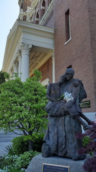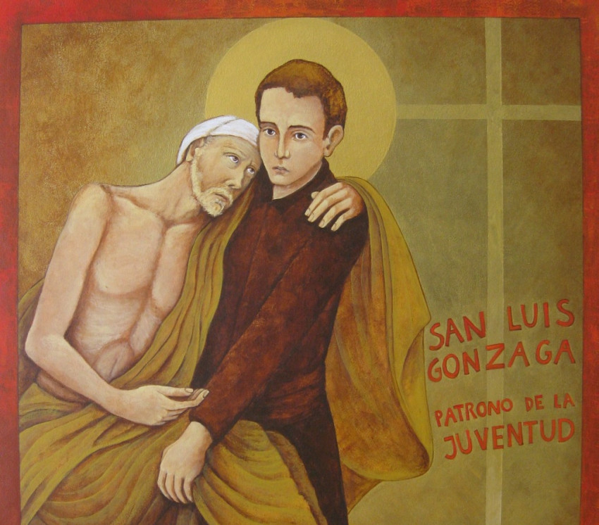 1590–91 telén éhínség és pestis pusztított Itáliában. A Római Kollégium növendékei is beálltak az önkéntes ápolók sorába. Alajos az utcán összeesve talált egy beteget, akin a pestis minden jele látható volt. Késlekedés nélkül a vállára vette, és a kórházba vitte. A huszonhárom éves ifjú elkapta a betegséget. Hosszú szenvedés után, 1591. június 21-én halt meg.