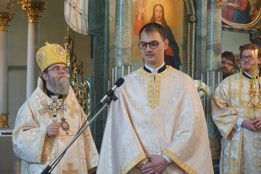 Ezen a mai napon a mennybemenetel tropárját énekelve mindannyian szívből örvendezünk: „Fölemelkedtél dicsőségben Krisztus Istenünk, és örömet szereztél tanítványaidnak.” A szentelési liturgia örömét csak fokozza az, hogy Jézus Krisztus ilyen személyes módon hívja meg övéit, és személyesen adja át örömhírét. Nem e világ módján, hanem az Istentől kitervelt módon – tette hozzá a püspök.