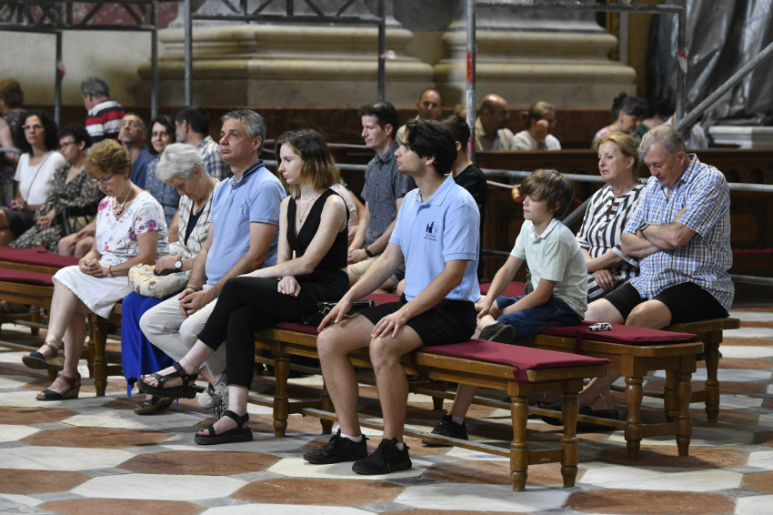 A templomtérben éppen a szentély és a padlózat felújítása zajlik. Jó hír, hogy a bazilikában nem terveznek teljes lezárást, hősi küzdelem folyik itt a hitéletért, a templom „lelkéért”, valamint az idelátogatók, a turisták figyelméért, amely lankadatlan, s ez örvendetes.