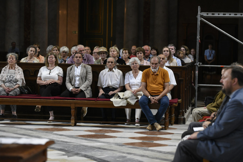 A bazilika építésének történetéről, a kincstárban megnyílt kiállítás anyagáról, koncepciójáról Kontsek Ildikó művészettörténész, a tárlat rendezője beszélt részletesen.