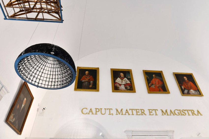 Ahogy azt korábban írtuk, az esztergomi bazilika építésének történetét bemutató kiállítás az épület főhomlokzatának latin feliratát idézi, mely szerint ez a templom Magyarország valamennyi templomának feje, anyja és tanítómestere.