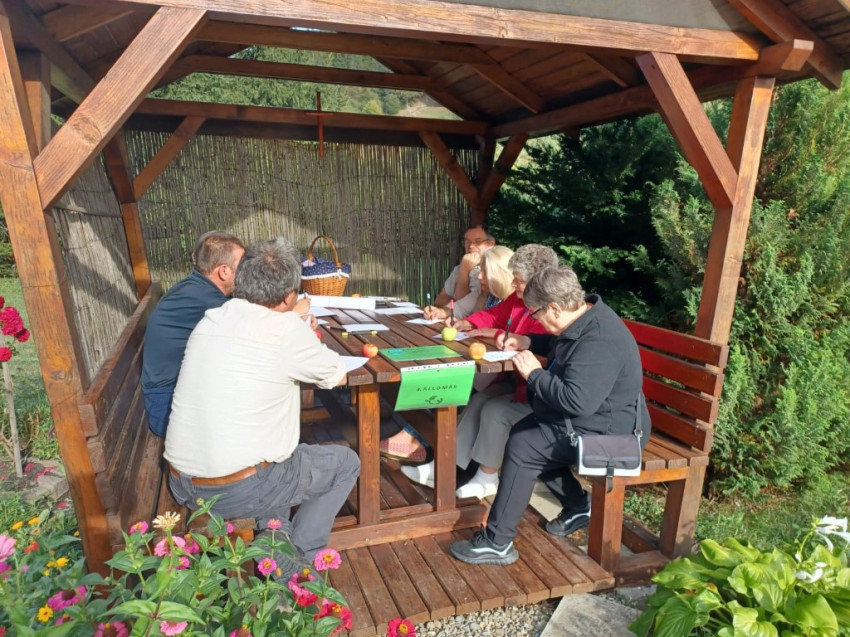 A délután folyamán kiscsoportos foglalkozásra került sor a Szent Klára-ház kertjében, az egyes állomások témáját a Naphimnusz egy-egy része adta.