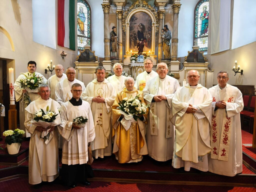 Az ünnepség kezdetén a helyi plébános, id. Czikó László köszöntötte az ünnepeltet és az egybegyűlt híveket. Elmondta, hogy április 25. a gyémántmisés pappá szentelésének is a napja, de egyúttal az egyházközség örökös szentségimádási napja is.
