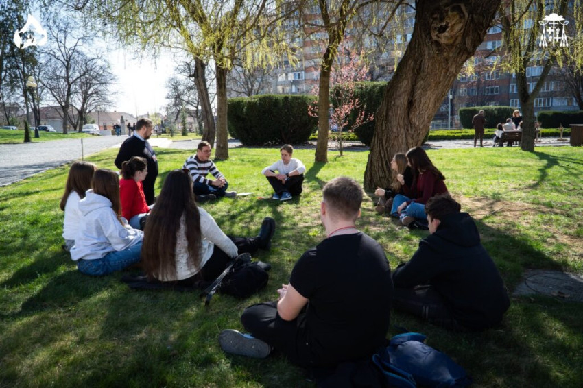 Különleges volt maga az ebéd is, hiszen a fiatalok önfeledten beszélgettek, nevettek, egy fa árnyékában ülve. Nem széken egy asztal mellett, hanem Isten karjaiban, a fűben, a virágok között.