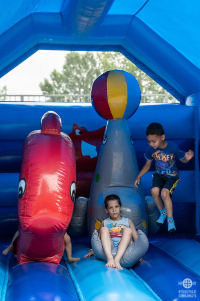 A szelfifal előtt is sokan megfordultak, hogy vicces karaktereknek öltözve vidám fotókat készítsenek a pillanatról. A népi játékok, ügyességi, horgászós, célbadobós játékok mellett meg-megálltak a gyermekek, vagy épp csocsóval, tollassal, röplabdával, focival fárasztották egymást és a nevelőket, munkatársakat.