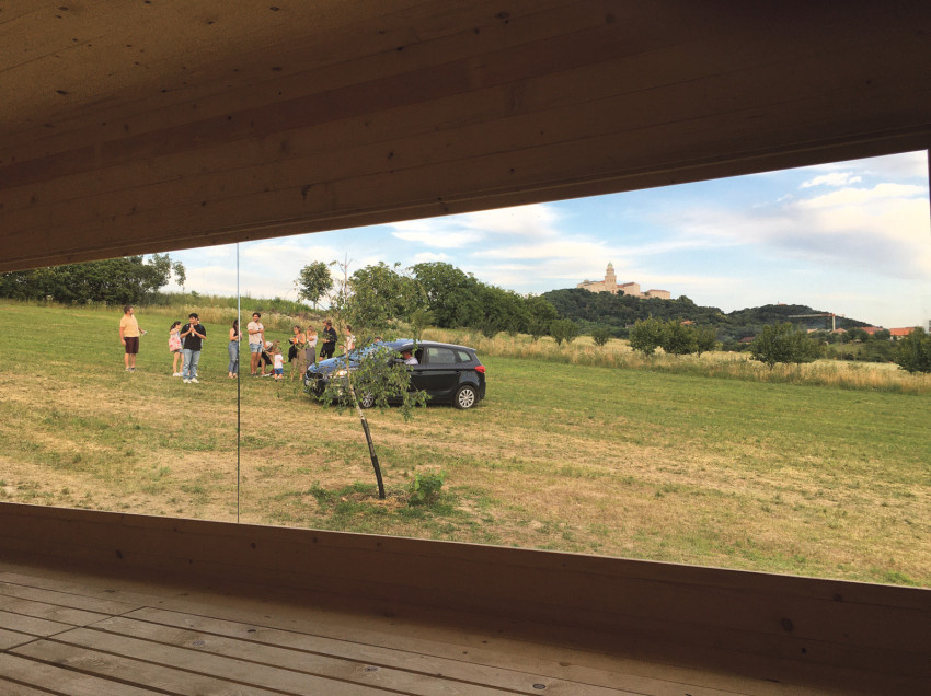 A Halupa Eszter és Kovács Brigitta építész-, valamint Hinfner Zsófia Adél és Szokolai Gréta grafikusművész-hallgatók mint tervezők által jegyzett pályázat építészeti koncepciója alapján a környezethez igazodó, minimális térigényű, fenntartható, szerkezetként és burkolatként is működő egymásra helyezett pallókból épült, átszellőző fedélszékes, így a felmelegedéstől természetes módon védő, filigrán fémlemez tetővel fedett építmény készült, amely keleti oldalán a szomszédos mező virágain és fáin túl csodálatos kilátást nyújt az apátságra. Az idelátogatók tehát szemlélődére hívó, valóban festői környezetben gyógyulhatnak.