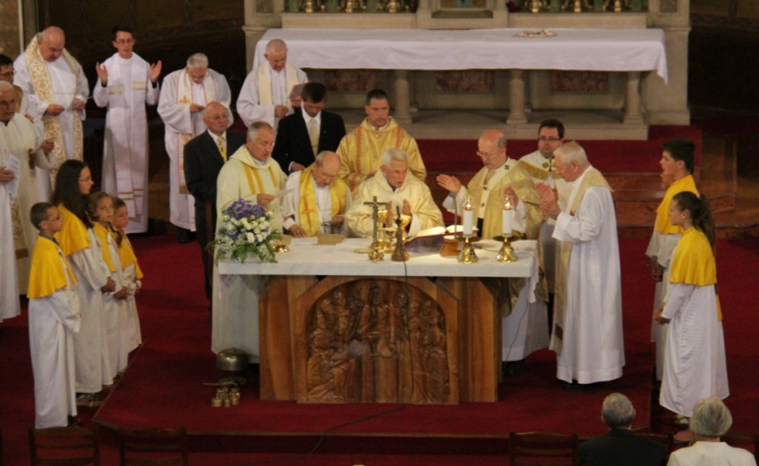 Végül Gyűrű Géza gyémántmisés áldásban részesítette Márfi Gyula érseket, Szendi József nyugalmazott érseket, a jelen lévő paptestvéreket és a híveket.