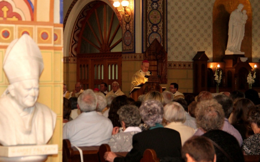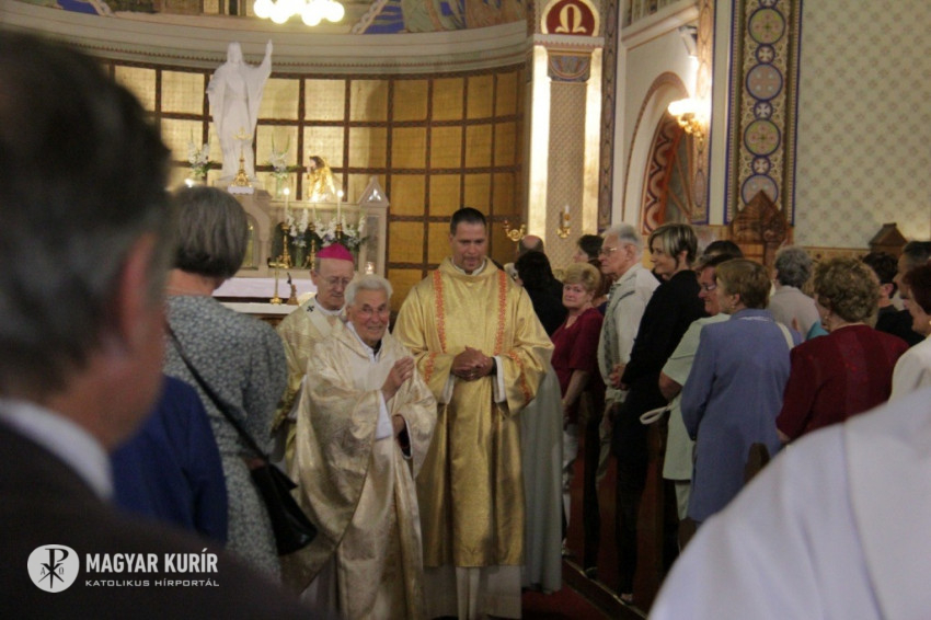 Az ünnepi szentmise keretében Márfi Gyula érsek mondott szentbeszédet, felidézve az ünnepelt életútját. Mint elmondta, az ember lelkét szentelésének évfordulóján eltölti a hála mindazokért az ajándékokért, amiket Isten megadott, mindazokért az eredményekért, amit sikerült elérni, de különösképpen azért, hogy megadta az állhatatosság kegyelmét. Ez az állhatatosság segítette át a hatvan év szolgálaton, jóban-rosszban, sikerben és balszerencsében, örömben és bánatban. A papi hivatáshoz állhatatosság szükséges, nem lehet a pályáról letérni anélkül, hogy magunknak vagy másoknak sérüléseket ne okoznánk. Végül Isten áldását kérte életére és további munkájára, hiszen vannak még imák, amiket el kell mondania, vannak még feladatok, amiket el kell végeznie. Van még keresztje, amit hordoznia kell. Vannak még emberek, akiknek a lelkében fel kell ébresztenie a kegyelmet, amely a püspök szentelése folytán benne él.