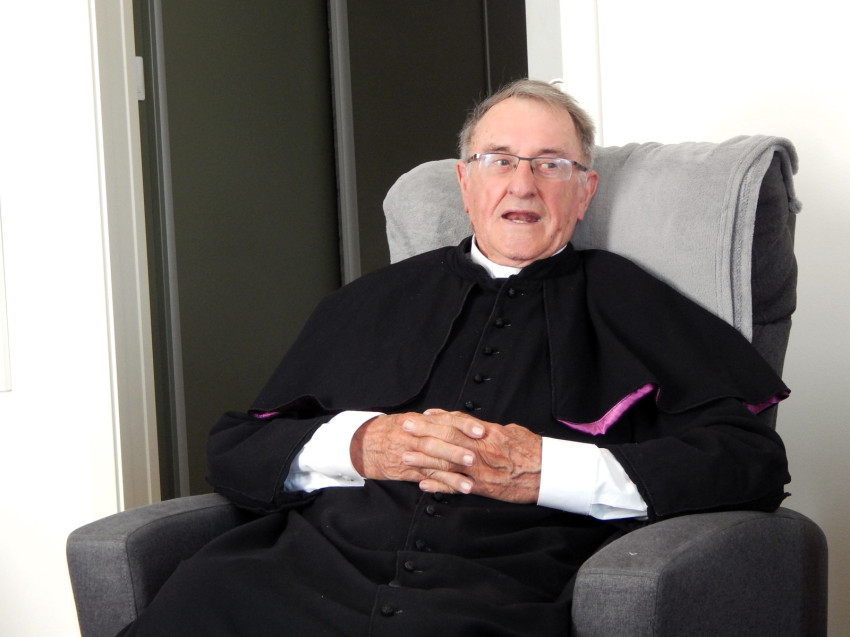 Két otthona közül a kópháziban fogad. A plébániából létesített nyugdíjasház lakója nyugalomba vonulása óta. De nem nyugszik, továbbra is fáradozik, saját kertjében és a nagy „kertben”, a világban egyaránt. Isten népéért. Szívesen, fáradtságot nem ismerve helyettesít, segít, ha szükséget éreznek a környékbeli lelkipásztorok. Maga vérbeli lelkipásztor, „bárányszagú pásztor”. Boldog ember. A beszélgetés során világosan érzem, végig az emberek felé forduláson van a fókusz. 1940 karácsonyán született Sopronhorpácson, 1964 júniusában szentelték pappá Győrben. A gyémántmisés Németh Antal atyával, tiszteletbeli esperessel, a Soproni Társaskáptalan kanonokjával beszélgettünk.
