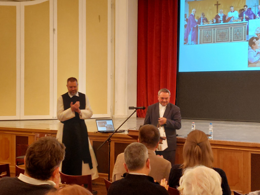 A budai ciszterci Szent Imre-plébánia idén ünnepli alapításának századik évfordulóját, az esztendő során pedig a megszokottnál is több programmal készül a közösség. Az est moderátora, Süveges Gergő az előadás megkezdése előtt arra buzdította a dísztermet megtöltő hallgatóságot, hogy minél több eseményen vegyenek részt, és kapcsolódjanak be a „fénygyűjtő” játékba.