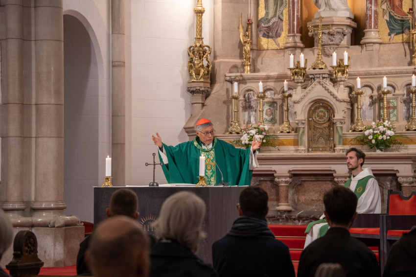 A honkongi bíboros szentmisét is celebrált a pesti Jézus Szíve jezsuita templomban. Homíliájában párhuzamot vont Isten és az ember ideje között. Napjainkban az ember rohanó világban él és egyre türelmetlenebb, azonnali igazságot akar, nem akarja, hogy bárki szenvedjen. Isten időszámítása azonban más, nemcsak a mi vágyainkkal, hanem mindenkivel foglalkozik, és időt ad a bűnösöknek a bűnbánatra. Hagynunk kell, hogy Isten Isten legyen, és Isten meglepi azokat, akik bíznak benne.