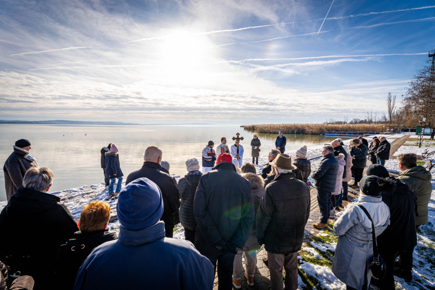 „Jézus Krisztusnak a Jordánban való alámerítkezésére emlékezve áldjuk meg az élő vizeket, a Balaton vizét. A bűn nélküli Bárány a vízben alámerítkezve saját testével és istenségével megszentelte a vizet és földünket. Az Ige testté lett, hogy emberségünket helyreállítsa, és felvegye az isteni közösségbe” – mondta Czakó András.
