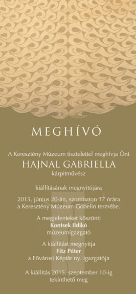 Idén Esztergomban tizedik alkalommal rendezték meg a Múzeumok Éjszakája elnevezésű programsorozatot. A Keresztény Múzeum Hajnal Gabriella kárpitművész megnyitójával kezdte meg az estét. Hajnal Gabriella a magyarországi kortárs kárpitművészet egyik legismertebb alakja. Életpályája az 1960-as évek elejétől szorosan összefonódott a szövött képek tervezésével és rendkívül pontosan tervezett kivitelezésével. Művei figurálisak, témáit a Szentírásból, a népművészetből, az irodalomtörténetből, valamint a szentek legendáiból választotta.