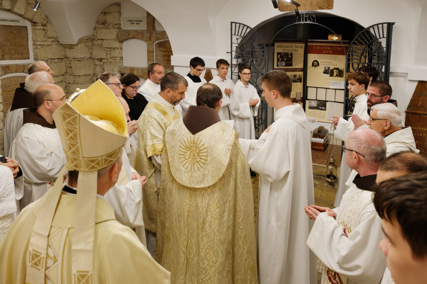 Kálmán Peregrin OFM, a pesti ferences templom igazgatója az ünnepi szentmise előtt köszöntötte a nagyatádi, a szombathelyi és az esztergomi híveket – ezeken a településeken is szolgált egykor Hajnal Zénó.