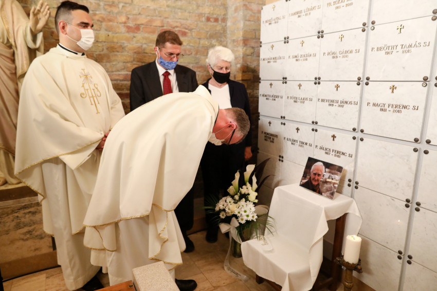 A temetési szertartás a templomban kezdődött, majd Jálics Ferenc hamvait ünnepélyesen a családtagok és rendtársak kíséretében az altemplom urnatemetőjében helyezték örök nyugalomra.
