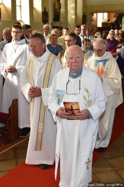 Az ünnepi szentmise kezdetén a gyermekek személyre szabott verset adtak elő, majd az alábbi közös imával köszöntötték Frajna András címzetes esperest: