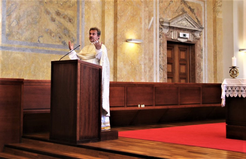 Végül nekünk magunknak kell Isten beszédévé válnunk: ahogy időről időre figyeljük az Istent, az örökkévalót, mi magunk válunk teológiává, és Ő szól általunk és belőlünk. Olyan elszántsággal merjünk teológiává válni, amilyen szeretettel az Atya fordul az ember felé. Így menjünk a tanterembe, az osztályba, a plébániai közösségbe, terepre, kórházba – biztatott a szónok. – Biztosan lesznek nehéz helyzetek, de figyeljük, ahogyan mindez a Szentháromság felfelé mutat, és megérezzük, hogy milyen kitüntetésben van részünk. Ez támogatást ad, hogy mi is úgy szeressük ezt a világot, ahogyan az Atya szerette, aki egyszülött Fiát adta érte.